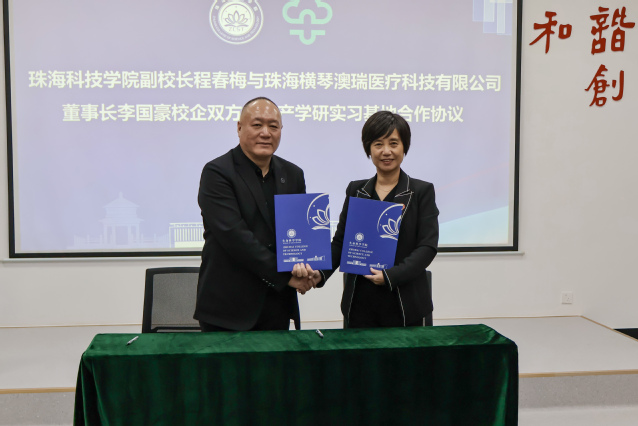 珠海科技学院与珠海横琴澳瑞医疗科技有限公司将以琴澳生命健康研究院和产学研基地为平台,不断深化合作,共同探索生命健康的奥秘,助力企业高质量创新发展,提高学校人才培养质量。双方坚信,通过共同努力和紧密合作,将在生命健康领域取得更加丰硕的成果,为社会的健康事业做出更大的贡献。此次活动标志着双方在生命健康领域合作迈出了坚实的步伐,共同开启了产学研深度融合的新篇章。